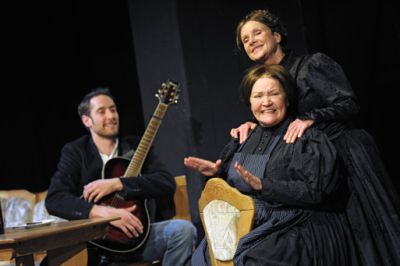 Margit Schulte-Tigges und Sonja Mustoff ergänzen sich ideal in ihren komplementären Rollen: der intellektuell scharfzüngigen und ihre Schwester stets ein wenig belehrenden Luise und der so gutmütigen wie lebensstarken Mathilde, die sich nicht die „Butter vom Brot“ nehmen lässt. Das Zusammenspiel der beiden ist ein Genuss für die Zuschauer. Ihnen assistiert Finn Henrik Hanssen als junger Spielmann mit Gitarre, der plötzlich auf einen dahingesagten Wunsch von Luise hin („Ach, hätten wir jetzt einen jungen, dreiundzwanzigjährigen Musikanten hier bei uns….“) in der Wohnung steht und fortan typische Volks- und Rebellenlieder des 19. Jahrhunderts spielt und singt. Doch auch ihn schickt Leuise irgendwann einmal freundlich aber konsequent weg, wenn ihr gerade danach ist. Ein bezeichnendes Beispiel ihrer Unabhängigkeit.