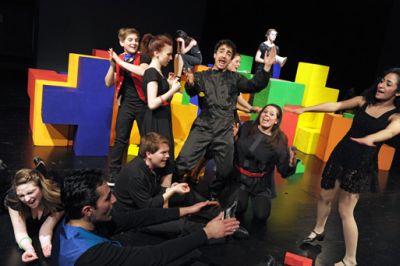 Die Bühne ist wie ein übergroßer Spielplatz gestaltet, in dem Duplo-Steine der Größe XXL in allen Farben und Formen wild durcheinanderliegen. Zur jazz-poppigen Musik von Jakob Möller (Klavier) und Grégoire Pignède (Schlagzeug) strömen die Darsteller auf die Bühne und beginnen, die Duplo-Steinen zu einem Gebilde zusammenzusetzen, das keinem bestimmten Zweck dient. Es symbolisiert lediglich die tägliche Mühe aller Schüler, Studenten und Berufstätiger, aufzustehen und einen hektischen Arbeitstag durchzustehen. Ein Teil der Darsteller spielt apathische Schausfensterpuppen, die mit hängenden Gliedern und Köpfen auf der Bühne herumstehen und die von den anderen, eifrig umherwuselnden Darstellern ständig wieder auf- und ausgerichtet werden, bis sie schließlich aus Übermüdung doch zusammenbrechen und einfach einschlafen.