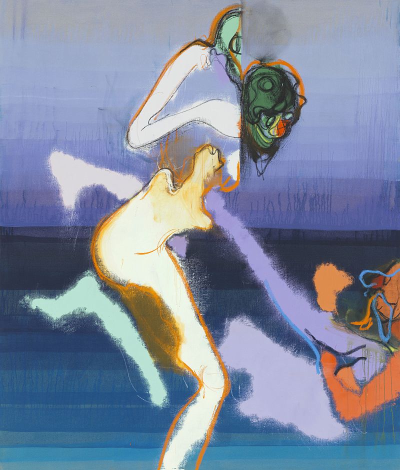 Daniel Richter, nicht verwandt mit dem dreißig Jahre älteren Kollegen Gerhard Richter, kam 1962 in Norddeutschland zur Welt und lebt heute in Berlin und Wien, wo er an der Akademie für Künste lehrt. Richter ist einer der richtungsweisenden zeitgenössischen Künstler und hat in den letzten Jahrzehnten deutlich voneinander abgesetzte Entwicklungsstufen durchlaufen. Er begann mit rein abstrakter Malerei und ging dann Anfang dieses Jahrhunderts über zu einer figurativen Malerei, die unverkennbar gesellschaftlich und politisch geprägt war. Seine Bilder lebten dabei von den kräftigen, teilweise provokanten Farbkombinationen und typisierten Figuren, bei denen es nicht um die Charakterisierung des Individuums sondern um seine Stellung in seiner Umwelt ging. Dabei standen stets die wesentlichen Faktoren der menschlichen Existenz im Mittelpunkt: Macht, Gewalt und Sexualität.
