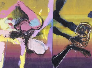 In dieser Serie hat Richter kaum mit dem Pinsel gearbeitet; stattdessen hat er vorrangig die Ölkreide eingesetzt und damit die leuchtenden Farbflächen angelegt oder dynamische Linien – oftmals Köpfe und andere Körperteile – markiert und angedeutet. Gesichter sind in diesen Bildern meist ein Knäuel von Linien, die Triebhaftigkeit und Enthemmung zum Ausdruck bringen.
