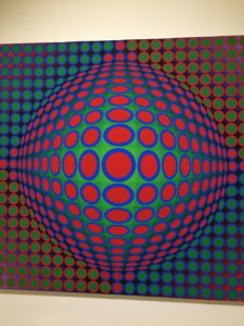 Wer das berühmte Bild der surrealistisch sich endlos im Kreis drehenden Treppe von M.C. Escher kennt, wird sich in dieser Ausstellung daran erinnert fühlen. Victor Vasarely, der französische Maler ungarischer Abstammung, hat Zeit seines Lebens die Vieldeutigkeit geometrischer Formen in den Mittelpunkt seines Schaffens gestellt und dabei bewusst Werke geschaffen, die den Betrachter verwirren und zu einem andauernden Kampf zwischen Auge und interpretierendem Gehirn führen. Man kann Vasarely (1906 – 1997) zu Recht als „Jahrhundertkünstler“ bezeichnen, zwar nicht in dem Sinne des bedeutendsten Malers seines Jahrhunderts, jedoch im Sinne einer Präsenz während dieser gesamten Epoche. Doch die durchaus aufregenden und schrecklichen Ereignisse dieser Zeit haben in seinem Werk keine unmittelbaren und schon gar keine plakativen Spuren hinterlassen.