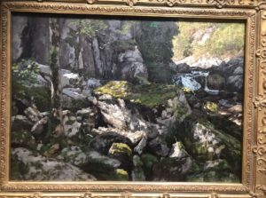 Erstaunlich auch die Bandbreite seiner Sujets. Neben den Still-Leben sind eine Reihe von Naturstudien – wieder viel Licht und Schatten – zu sehen, die mal einen kleinen Ausschnitt in Feld und Wald oder ein Haus, mal eine weite Berglandschaft zeigen. Erstaunlicher für einen Österreicher, dass letztere eine deutliche Minderheit darstellen.