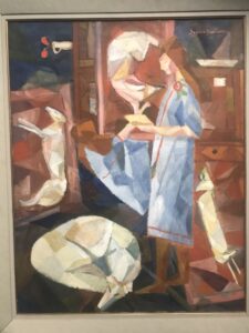 In der ansprechend hergerichteten Halle 1 der ehemaligen Dondorf-Druckerei sind etwa achtzig Arbeiten von Suzanne Duchamp großzügig gehängt. Man kann anhand dieser Anordnung sehr gut ihre künstlerische Entwicklung nachvollziehen, die sich etwa von 1910 an an verschiedenen Ausstellungen beteiligt. Im Gegensatz zu manch anderen Künstler-Familien herrschte bei den Duchamps stets ein sehr familiäres und gemeinschaftliches Klima. So arbeitete Suzanne schon früh mit ihren älteren Brüdern Gaston und Raymond zusammen und erfuhr von ihnen viel Unterstützung. Der engste Kontakte bestand jedoch zeitlebens zu Marcel, wohl auch wegen des geringen Altersunterschieds.