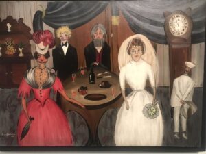 In den ersten Jahren beschäftigt sch Suzanne Duchamp intensiv mit dem Kubismus, um dann während des Ersten Weltkriegs und unmittelbar danach Mitglied der DADA-Bewegung zu werden und sich von dieser alle bisherigen Normen sprengenden Richtung stark beeinflussen zu lassen. Die Ausstellung zeigt nicht nur ihre einschlägigen graphisch orientierten Bilder, sondern auch eine Reihe von Flugblättern und Veröffentlichungen, in denen auch der Name Duchamp in mehreren Verbindungen auftaucht.