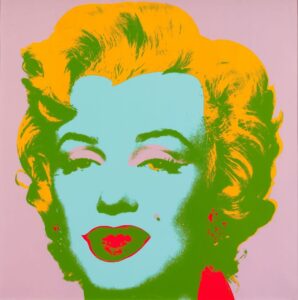 Andy Warhol: „Marilyn Monroe in Blau und Orange vor Pink“, 1967