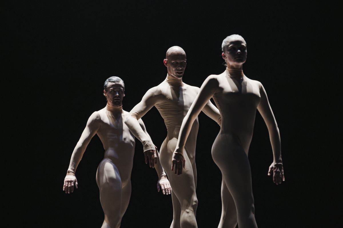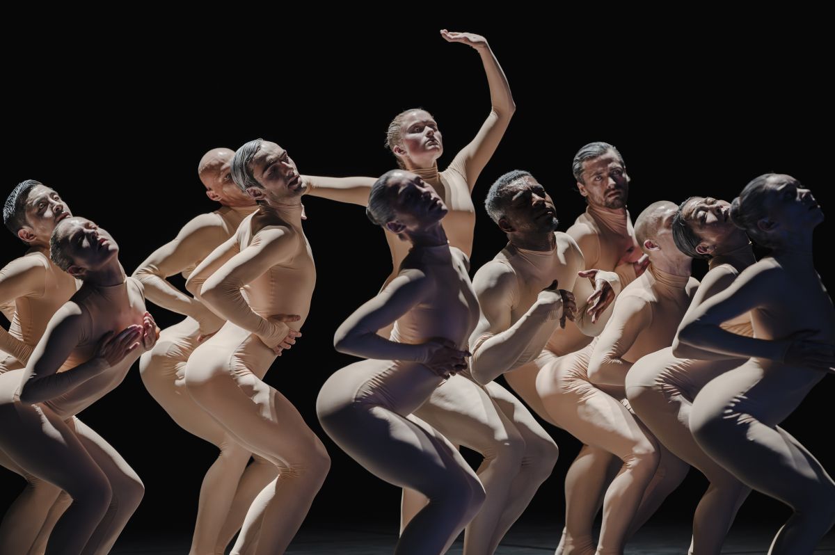 Das zwölfköpfige Ensemble trägt hautfarbene, enge Bodies, die auf den ersten Blick Nacktheit suggerieren, dazu zurückgegelte, leicht angegraute Haare. Diese Einförmigkeit ist Programm, weil dadurch die Bedeutung der sozialen Gemeinschaft betont wird. Auftreten und Bewegungen der Truppe zeigen jedoch vom ersten Augenblick an, dass es hier nicht um Erotik oder gar Sexualität geht, sondern eher um Schutzlosigkeit und existentielle Gleichheit.